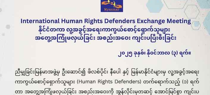 နိုင်ငံတကာ လူ့အခွင့်အရေးကာကွယ်စောင့်ရှောက်သူများ အတွေ့အကြုံဖလှယ်ခြင်း အစည်းအဝေး ကျင်းပပြီးစီးခြင်း