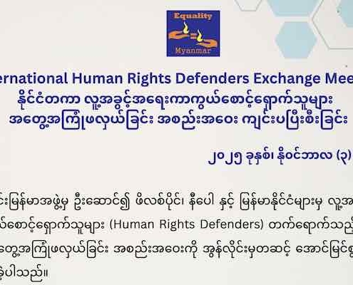 သတင်းညီမျှခြင်း မြန်မာအဖွဲ့ သည် လူ့အခွင့်အရေး အသိပညာပေးလုပ်ငန်းများ လုပ်ဆောင်ခြင်း၊ လူ့အခွင့်အရေးဆိုင်ရာ…